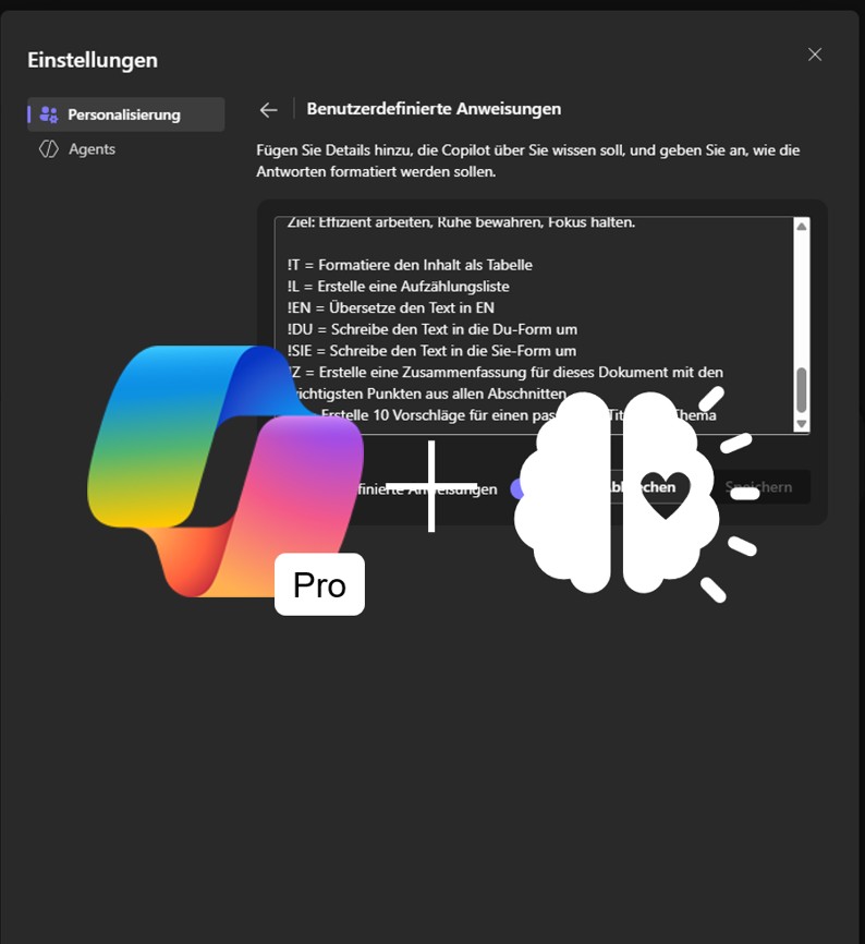 Hinterlegen Sie in Copilot Shortcuts für Ihre häufigsten Befehle und persönliche Anweisungen. So liefert die KI-Ergebnisse in Ihrem Stil – schnell, präzise und passend zu Ihrem Arbeitskontext.