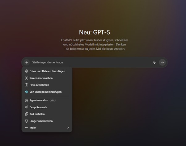 - Über den Modellwähler können Plus- und Team-Nutzer GPT-5-Thinking auch manuell auswählen, um besonders anspruchsvolle Aufgaben zu lösen – hier gilt ein Wochenlimit von 200 Nachrichten.
