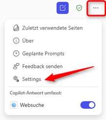 - Klicken Sie auf der Copilot Startseite oben rechts auf das 3-Punkte-Menü.