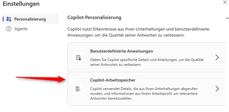 - Sie finden die Memory-Funktion unter dem Menüpunkt Copilot-Arbeitsspeicher.